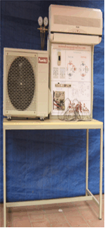 > Mặt panel làm bằng chất liệu compozit nhôm, trên mặt panel in sơ đồ thực dàn trải, sơ đồ thiết bị của điều hòa, bố trí thiết bị trên mặt panel để sinh viên quan sát và thực tập trên được đễ dàng.