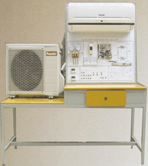 > Mặt panel làm bằng chất liệu nhựa chuyên dụng đảm bảo độ bền và cách điện, trên mặt panel sơ đồ dàn trải, sơ đồ thiết bị của điều hòa được khắc chìm bằng công nghệ khắc laser, bố trí thiết bị trên mặt panel để sinh viên quan sát và thực tập trên được dễ dàng.