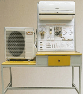 > Mặt panel làm bằng chất liệu nhựa chuyên dụng đảm bảo độ bền và cách điện, trên mặt panel sơ đồ dàn trải, sơ đồ thiết bị của điều hòa được khắc chìm bằng công nghệ khắc laser, bố trí thiết bị trên mặt panel để sinh viên quan sát và thực tập trên được dễ dàng.